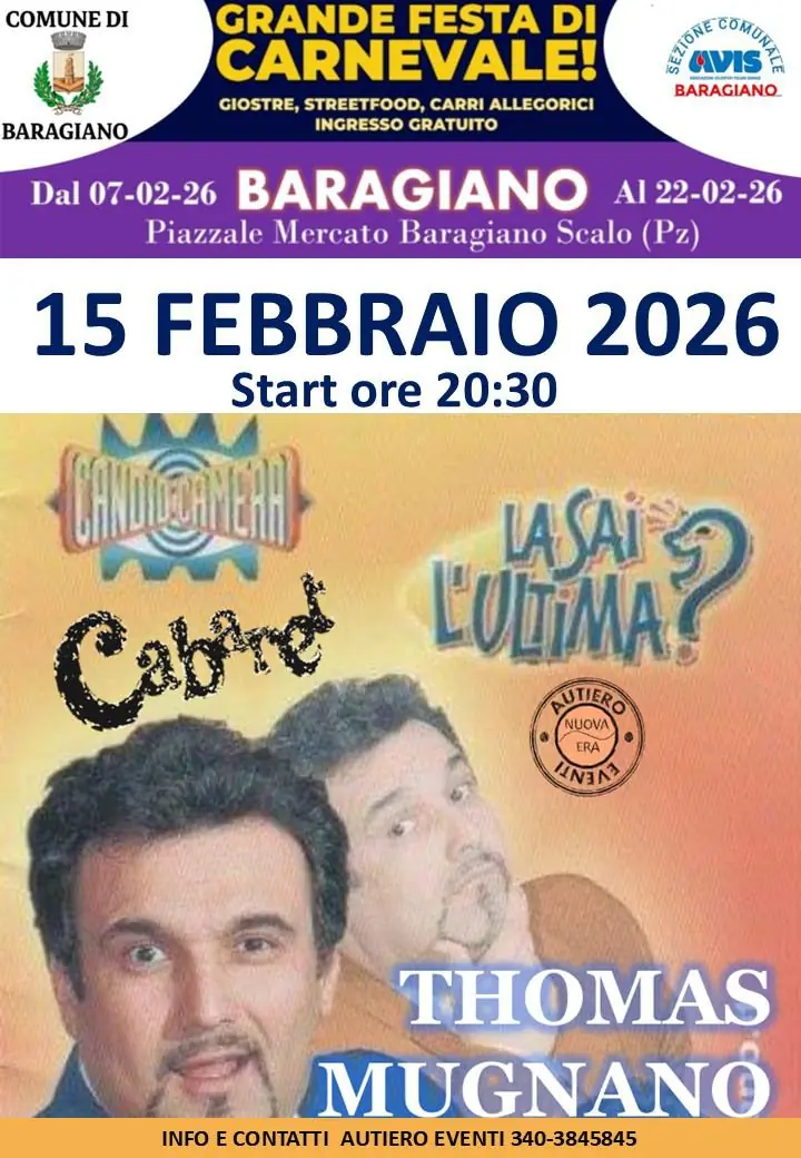 Ospite speciale direttamente da “Sai l’Ultima”: il cabarettista Thomas Mugnano (start h. 20.30)
