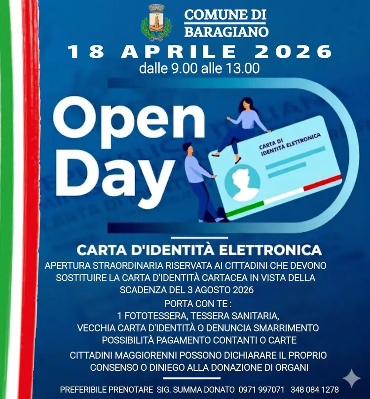 Open Day - Carta D'identità Elettronica (dalle 09:00 alle 13:00)